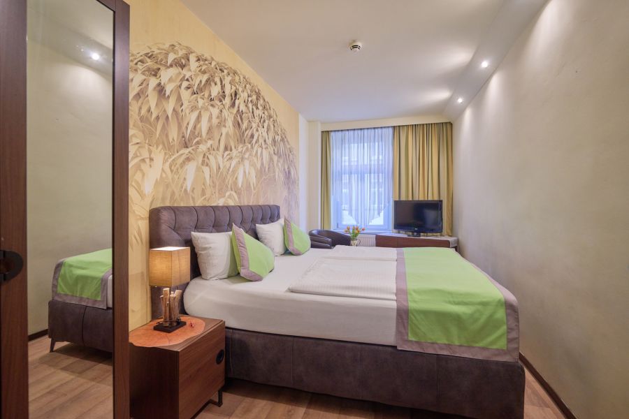 The stylish furnishings, warm colours and elegant, allergy-friendly parquet-design flooring create a cosy atmosphere. Enjoy a at-home feeling – right in the heart of Leipzig.